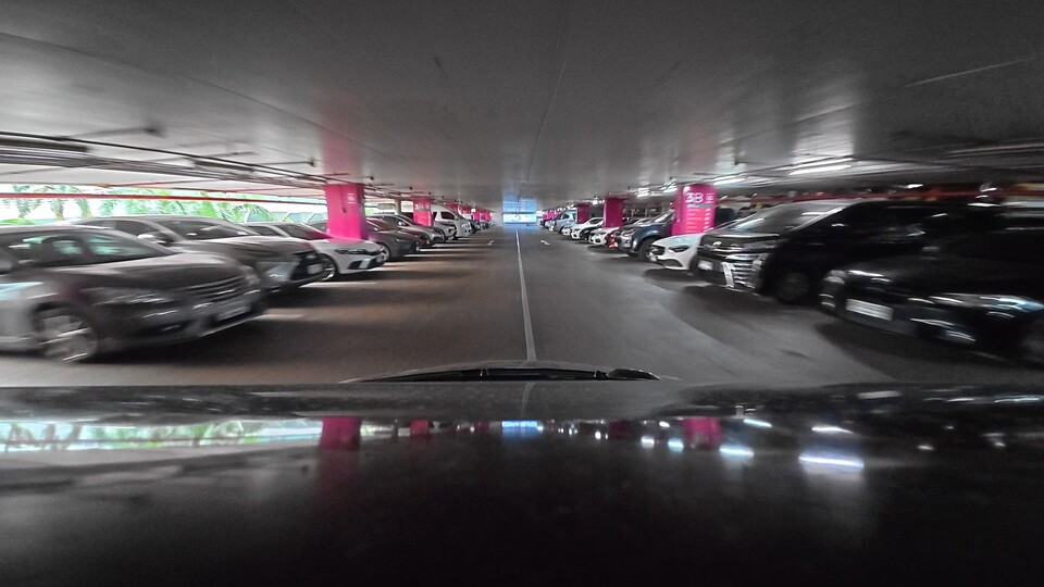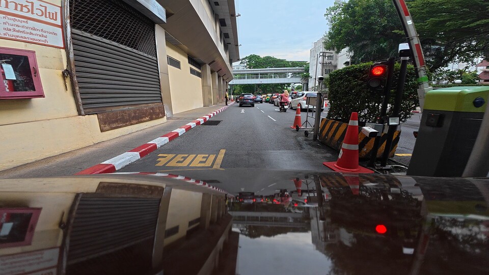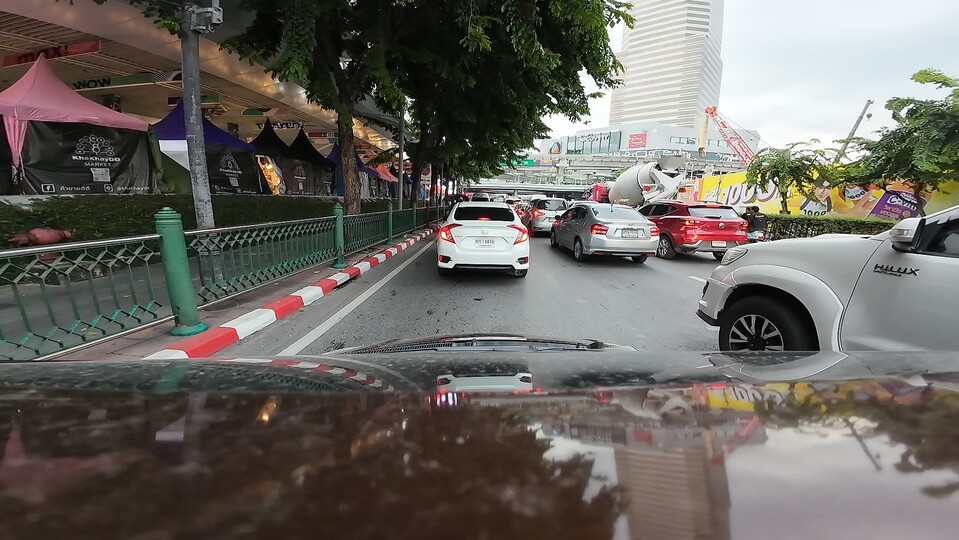 Action 5 pro เก็บแสงที่ด้านนอกอาคารได้ดีกว่า รวมถึงป้ายไฟสุดทาง