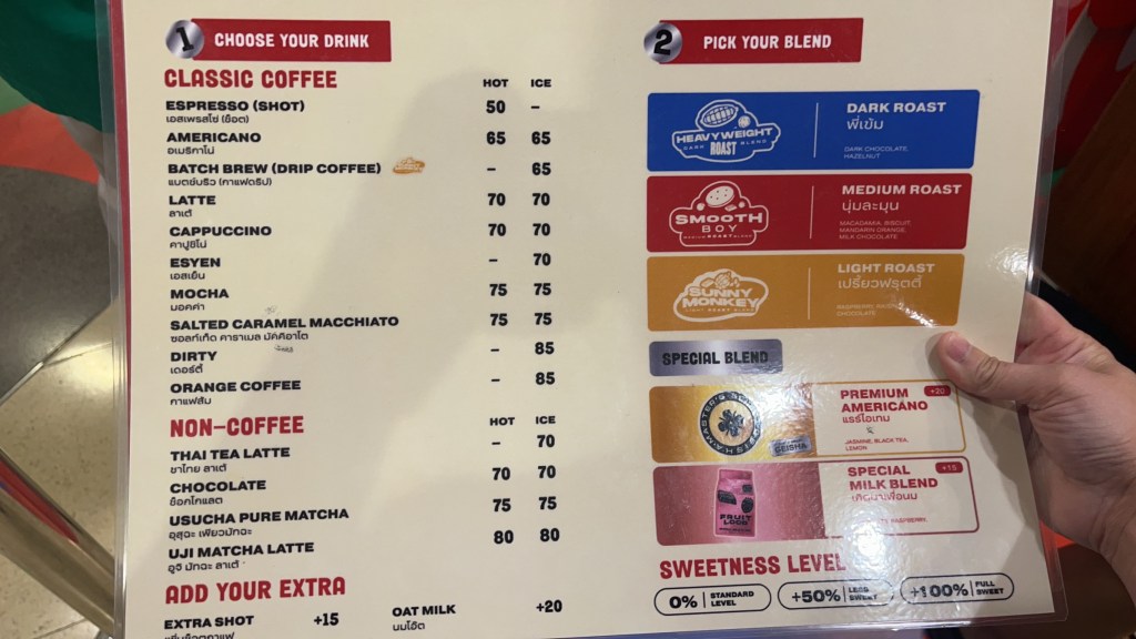 จุดขายร้านนี้ ที่เเห็นมาจากสื่อเลย คือเค้าเอากาแฟ Geisha (อ่านว่า เก-อี-ชา) ซึ่งเป็นเมล็ดกาแฟ ที่มีราคาสูงมาก มาขายในราคาเบาๆ ผมสั่งอเมริกาโน่ ปกติ 65 บาท เพิ่มเมล็ด Geisha อีก 20 บาท เป็น 85 บาท ต่อแก้ว